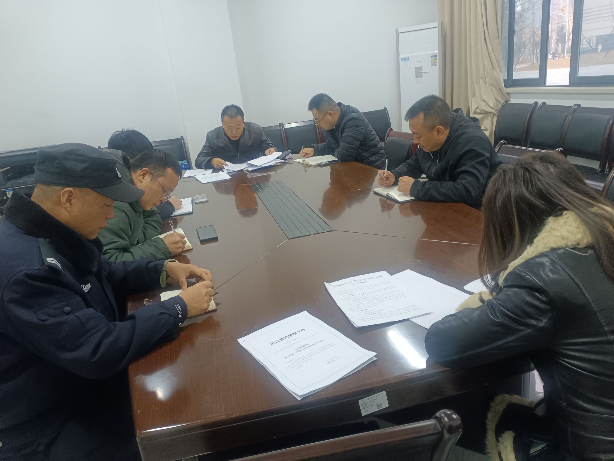 会上,王志强处长带领全体人员系统学习了《中共内江师范学院委员会关于成立师德师风建设领导小组的通知》《内江师范学院关于健全新时代师德师风建设长效机制的实施方案》《内江师范学院教师师德考核实施办法(试行)》《内江师范学院教师师德行为规范及失范行为处理办法(试行)》等文件。学习紧密结合保卫工作实际,着重解读了文件中与校园安全稳定、保密纪律、秩序维护、服务规范等密切相关的师德要求与行为底线,进一步强化了法治意识和规则意识。